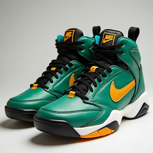 野球とアメフトの二刀流として知られたサンダースの魂を宿したこのシューズは、90年代のスポーツファッションの最高峰を体現しています。エメラルドグリーンをアクセントに、白、黒、ゴールドのカラーリングは、まるでサンダース自身の多才な才能を彷彿とさせます。このシューズが持つ「二刀流」的な魅力は、スポーツシーンとストリートファッションの境界を軽々と越えていく革新性が今も色あせていないことを物語っています。